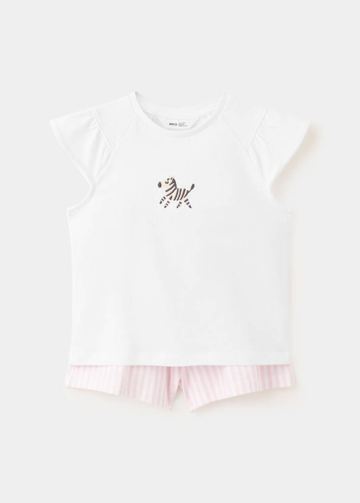 Pack of short-sleeved t-shirt and short pyjama trousers. 100% cotton fabric. Straight design. Short sleeves. Zebra embroidered detail. Striped shorts. Elasticated waist