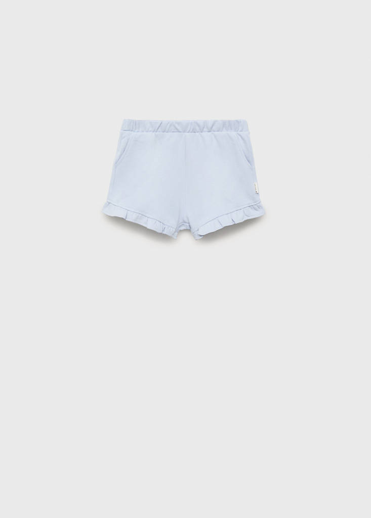 Shorts with ruffled hemCurrent price [GEL 39.00 ]GEL 39.00Select a colourSky BlueLarge garment - Choose one size down from the usualSelect your size9-12 months (80cm)12-18 months (86cm)18-24 months (92cm)2-3 years (98cm)3-4 years (104cm)4-5 years (110cm)5-6 years (116cm)Add to WishlistSee lookFree delivery to store100% Cotton. Straight design. Short design. Two side pockets. Elasticated waistband. Ruffles on the hemDetails, composition and careStore availabilityItem qualitiesRecycled cottonAt least 20%This fibre is obtained from pre- and post-consumer textile waste that is transformed into new fabrics.