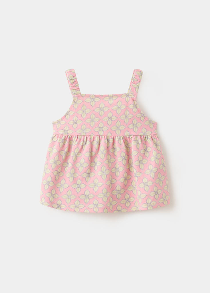 Total look. 100% cotton fabric. A-line design. Floral-print design. Straight collar. Straps