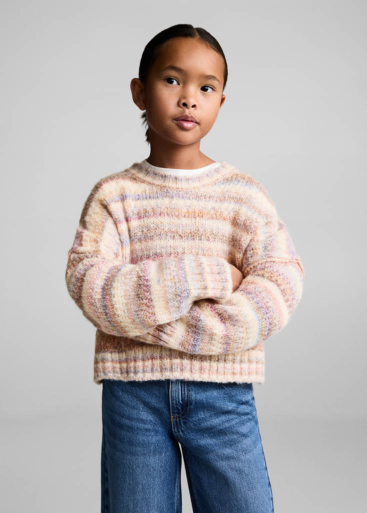 Back to school collection. Chunky knit fabric. Oversized design. Round neck. Long sleeves. Striped design