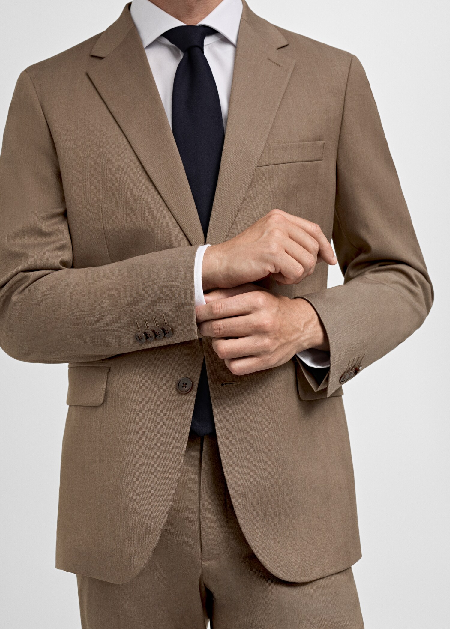 Slim fit. Comfort Stretch: Stretch fabric for added comfort. Herringbone design. Notch lapels and buttonhole. Two-button fastening at the front. Chest welt pocket. Two front flap pockets. Double back slit. Inner lining. Three inside pockets. Tailoring collection. Comfort: Horizontal and vertical stretch fabric for added comfort. Long buttoned sleeves.