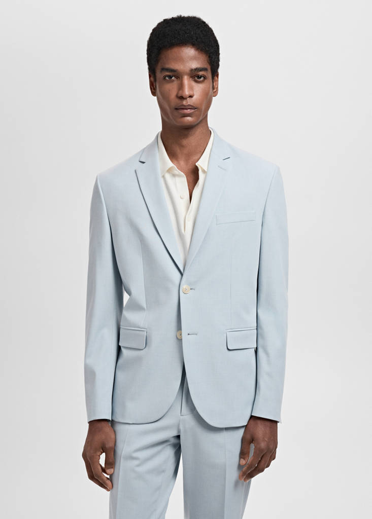 Slim fit. Tailoring collection. Notch lapels and buttonhole. Chest welt pocket. Front closure with buttons. Two welt and flap pockets on the front. Buttoned strap cuffs. Double back slit. Inner lining. Interior pocket
