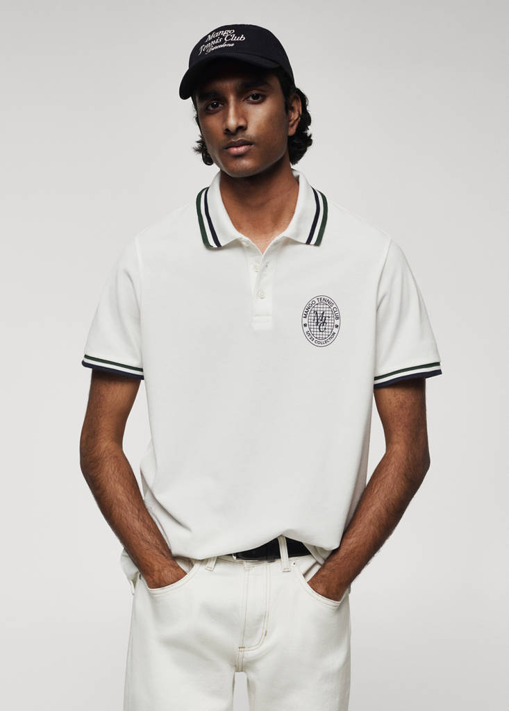 100% Cotton. Piquet fabric. Straight design. Polo neck. Contrasting collar. Contrast short sleeves. Straight hem. The model is 190 cm tall and is wearing a size M. Mango Tennis Club Collection