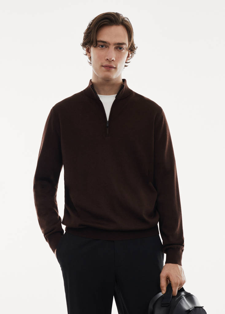 The chocolate brown colour is online exclusive. Performance Collection. Machine washable. 100% merino wool. Fine-knit fabric. Perkins collar with zip closure. Long sleeves with elastic cuffs. Straight hem. The colour black is exclusively online. Thermoregulating: This fabric offers optimal breathability to keep you at a stable temperature. Untrimmed hem. Straight design. Machine washable.