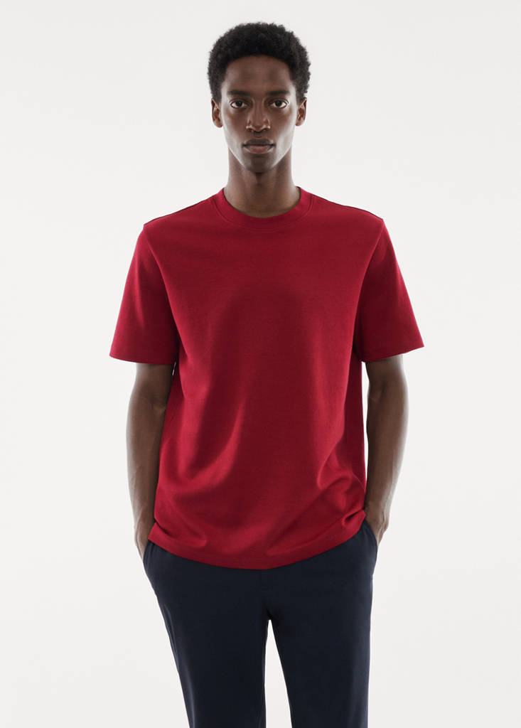Performance Collection. Relaxed. Cotton blend fabric. UV protection fabric. Breathable fabric. Anti-bacterial fabric. Lightweight fabric. Round neck. Short sleeves. Breathable: This fabric helps regulate body temperature by allowing moisture to escape. Standard design