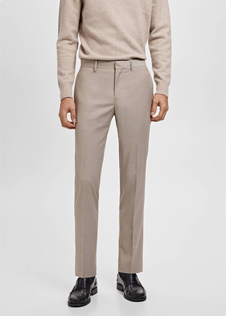 Slim fit. Tailoring collection. Belt loops. Front fastening with double-breasted buttons and zip. Side pockets. Two welt pockets with button at the back. Pressed crease detail at the front and back