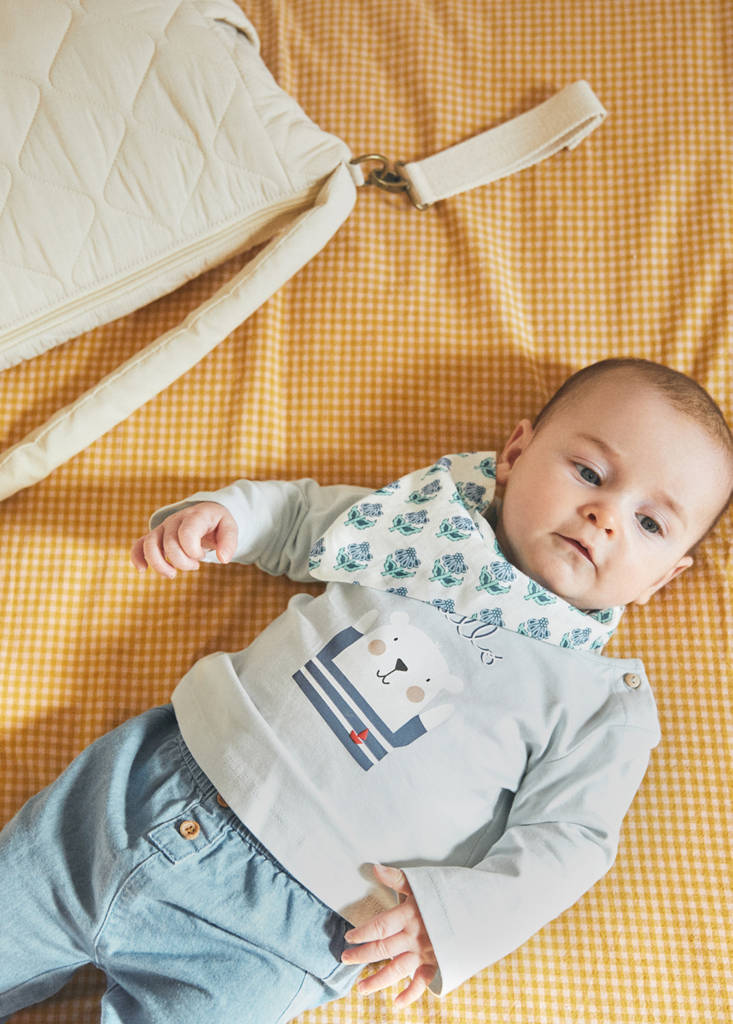 100% Cotton. Print. Straight design. Rounded neck. Long sleeve. Button up