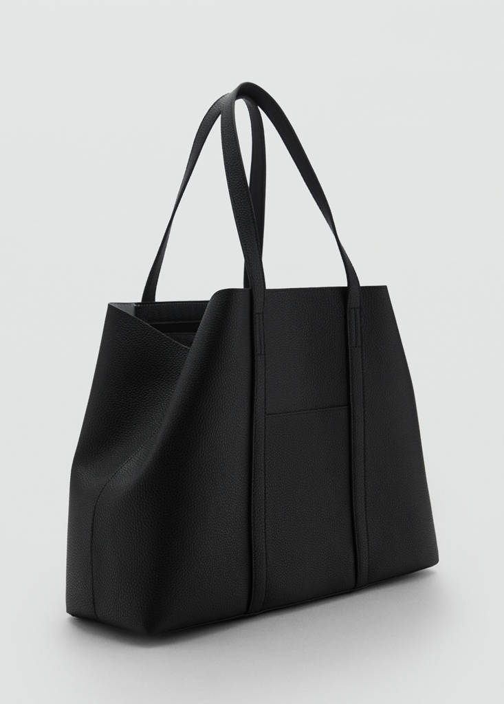 Double handle. Large. Interior pocket. Press stud fastening. Faux leather