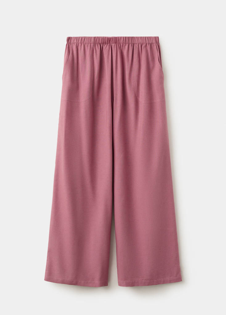Linen mix. Straight design. Long design. Elasticated waist. Two side pockets.