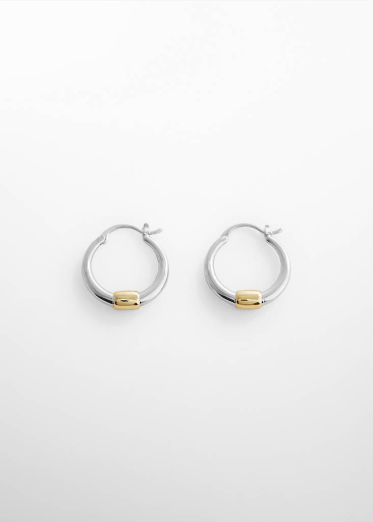 Small. Hoop design. Two-tone design. Metallic press stud fastening. 925 silver-plated collection . 18k gold-plated collection. We recommend avoiding contact with water, perfumes or cosmetics to prolong its life