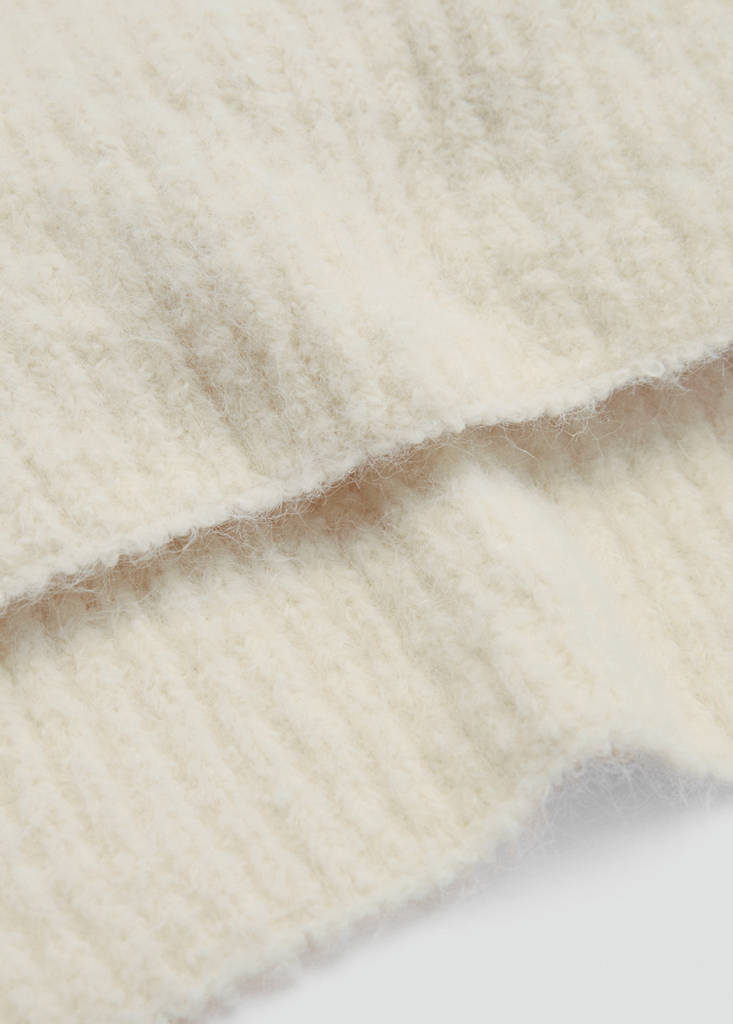 RESPONSIBLE WOOL. Cable knit fabric. Chunky knit fabric. Straight design. Crop design. High neck. Roll neck. Sleeveless. No Fastening. These garments contain wool obtained under the RWS (Responsible Wool Standard) certification, which ensures that animals have been treated ethically and responsibly