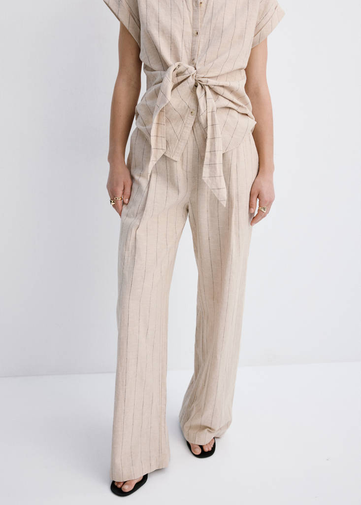 Linen and cotton blend fabric. Straight design. Print Diplomatic line. Belt loops. Mid-rise. Hook and zip fastening. Total look