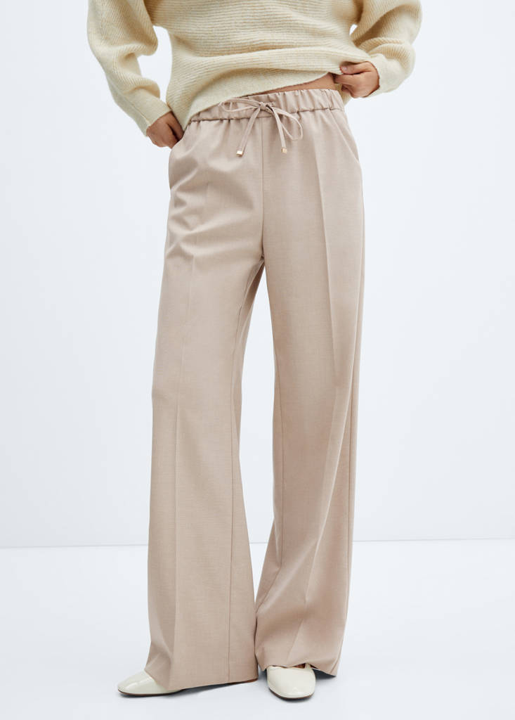 Wide leg trousers with elastic waistCurrent price [GEL 149.00 ]GEL 149.00Select a colourBeigeThe model is wearing size S and is 178cm tall.Select your sizeXXSXSSMLXLXXLDimensionsAdd to WishlistSee lookFree delivery to storeJogger design. Elastic band. Wide-leg design. High waist. Two side pockets. Long design. Fluid fabric. Elastic waist with tie closure. Inner lining. Available Plus. Office looksDetails, composition and careStore availability