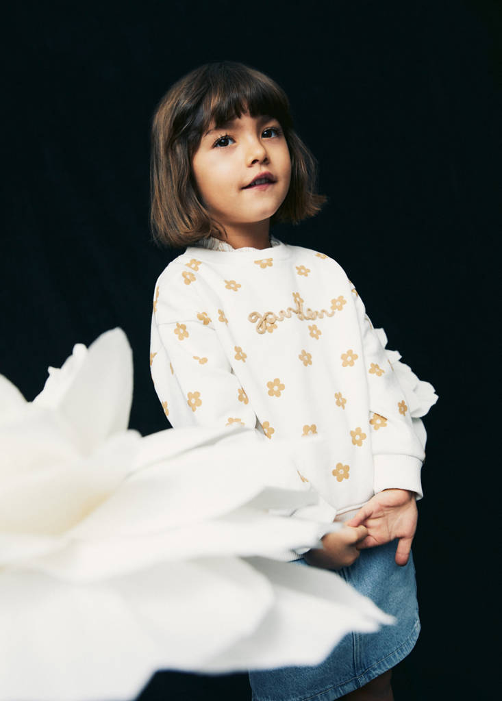 100% coton. Imprimé fleuri. Message brodé. Col rond. Manche longue. Sans fermeture