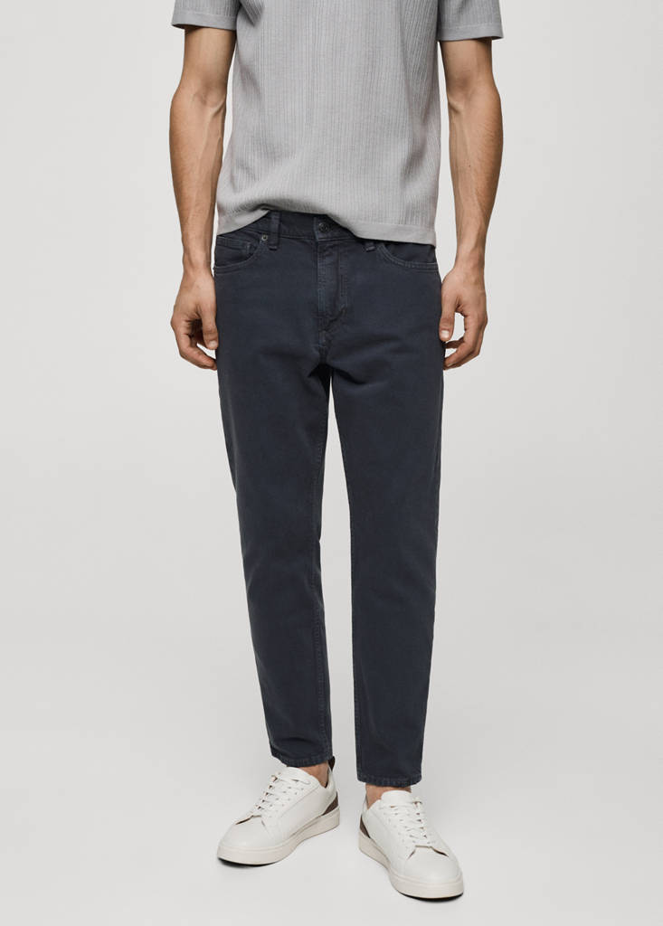 Tapered-fit : coupe large en haut qui se resserre depuis le genou jusqu’à la cheville. Tissu en coton. Style jean. Couleur beige. Passants de ceinture. Fermeture Éclair à l’avant. Deux poches latérales. Poche gousset. Deux poches plaquées à l'arrière