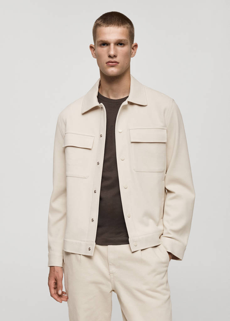 Tissu twill de coton. Coupe regular. Fermeture à l’avant à boutons-pression. Deux poches plaquées à rabat sur la poitrine. Deux poches latérales passepoilées. Manches longues et poignets boutonnés. Ourlet droit. Col classique