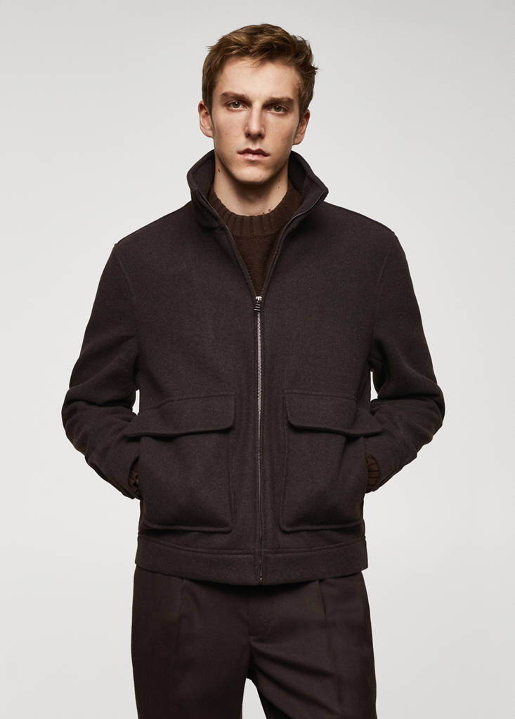 Tissu recyclé. Coupe regular. Col montant à fermeture Éclair. Fermeture Éclair à l’avant. Deux poches à rabat sur le devant. Manches longues et poignets boutonnés. Ourlet droit. Sans doublure intérieure