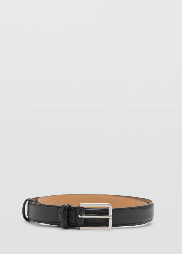 100% bovine leather. Very smooth leather. Square metallic buckle close