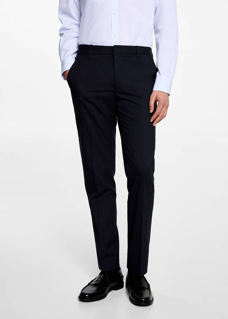 Slim fit suit trousersCurrent price [US$ 89.99 ]US$ 89.99Select a colourDark NavySmall garment - Choose one size up from the usualSelect your sizeXSNot available. I want it!SNot available. I want it!MNot available. I want it!LNot available. I want it!Notify meAdd to WishlistSee lookFree delivery to storeTotal look. Slim fit. Long design. Concealed button, hook and zip fastening. The model is 175cm and is wearing a size M. Straight designDetails, composition and careStore availability