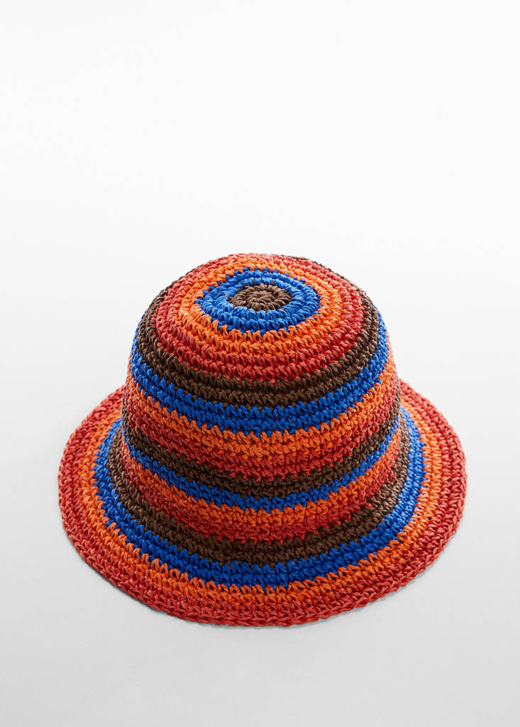 Multi-coloured bucket hatCurrent price [£ 25.99 ]£ 25.99Select a colourBlueSelect your sizeOne sizeAdd to WishlistSee lookFree delivery to storeNatural fibre fabric. Multicolour design. Unclosed. Festival SeasonDetails, composition and careStore availability