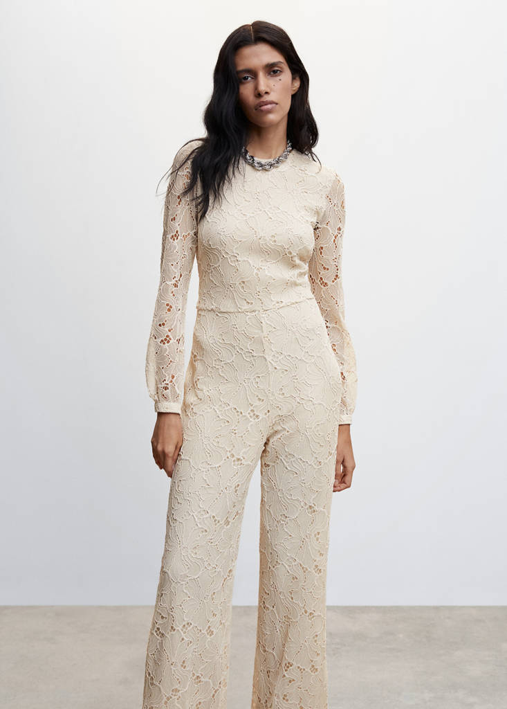 Lace fabric. Fitted design. Long design. Rounded neck. Long sleeve. Zip fastening on the back section. Inner lining. Garment length 155 cm. Party and events collection