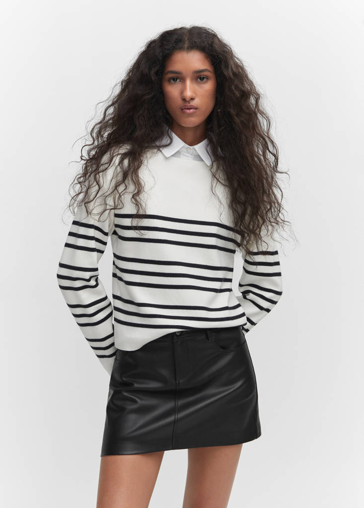 Boat-neck knitted sweaterCurrent price [£ 29.99 ]£ 29.99Select a colourNavyThe model is wearing size S and is 176cm tall.Select your sizeXXSXSSMLXLXXLMeasurementsAdd to WishlistSee lookFree delivery to storeFine knit fabric. Straight design. Available in plain and patterned. Boat neckline. Long sleeves. No Fastening. College. Office looks. Striped designDetails, composition and careStore availability