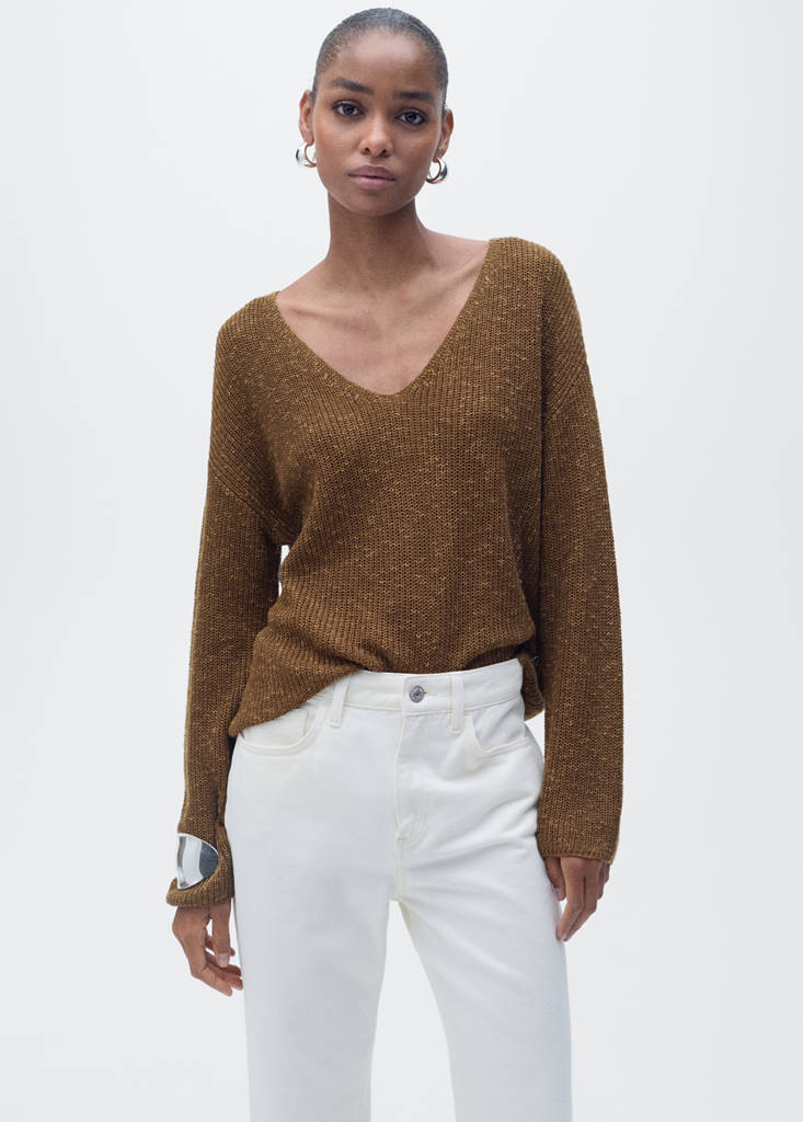 V-neck knit sweaterCurrent price [£ 29.99 ]£ 29.99Select a colourTobacco BrownSelect your sizeXXSXSSMLXLXXL1XL2XL3XL4XLSize guideAdd to WishlistSee lookFree delivery to storeSee availability in storeDescriptionChunky knit fabric. Straight design. V-neck. Long sleeves. No Fastening. Available Plus.See detailsShare
