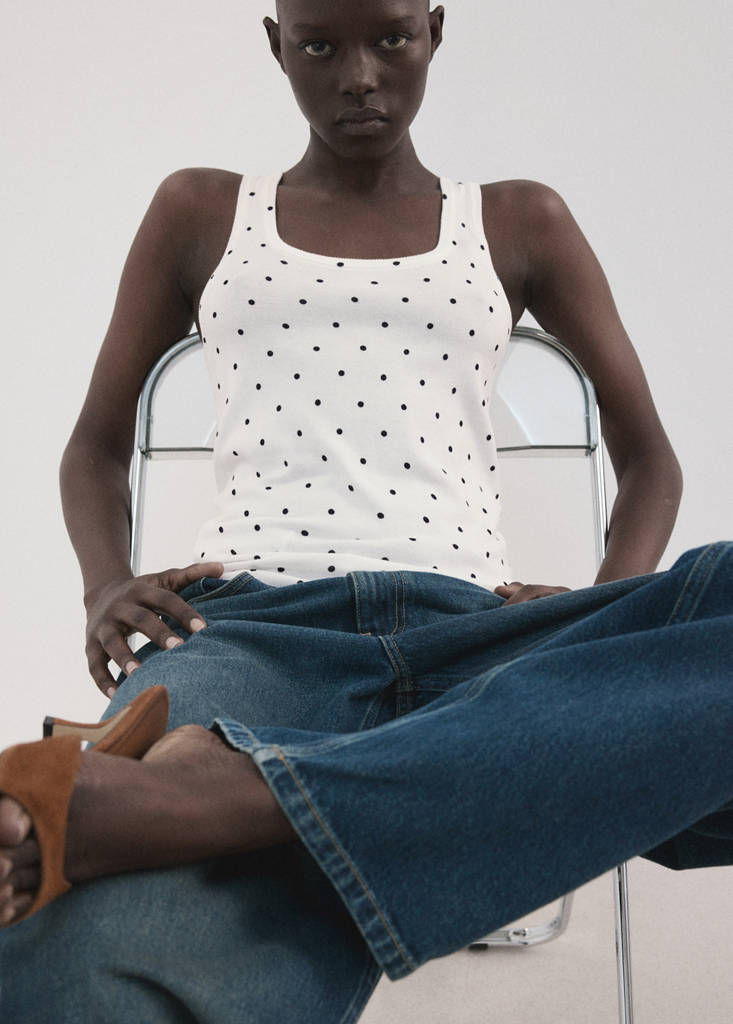 Polka-dot knitted topCurrent price [£ 19.99 ]£ 19.99Select a colourOff WhiteThe model is wearing size S and is 176cm tall.Select your sizeXXSXSSMLXLXXLSize guideAdd to WishlistSee lookFree delivery to storeSee availability in storeDescriptionFine-knit fabric. Straight design. Spots print. Round neck. Sleeveless. Thin strap. No Fastening. Available Plus.See detailsShare