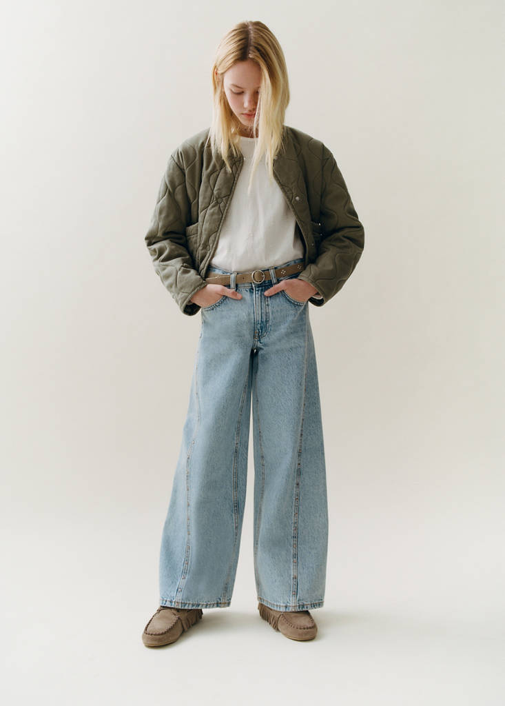 Lyocell fabric. Quilted design. Straight design. Medium design. Round neck. Long sleeves. Inner lining. Two front pockets. Flap closure with snap button. Internal label for personal data