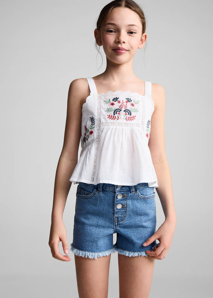 Denim shorts with buttonsCurrent price [US$ 25.99 ]US$ 25.99Select a colourMedium BlueSelect your size6 (116cm)Not available. I want it!7 (122cm)Not available. I want it!8 (128cm)Not available. I want it!9 (134cm)Not available. I want it!10 (140cm)Not available. I want it!11 (146cm)Not available. I want it!12 (152cm)Not available. I want it!13-14 years (164cm)Not available. I want it!DimensionsNotify meAdd to WishlistSee lookFree delivery to storeDenim-style cotton fabric. Short design. Frayed hem. Five pockets. Button upDetails, composition and careStore availabilityItem qualitiesRecycled cottonAt least 20%This fibre is obtained from pre- and post-consumer textile waste that is transformed into new fabrics.