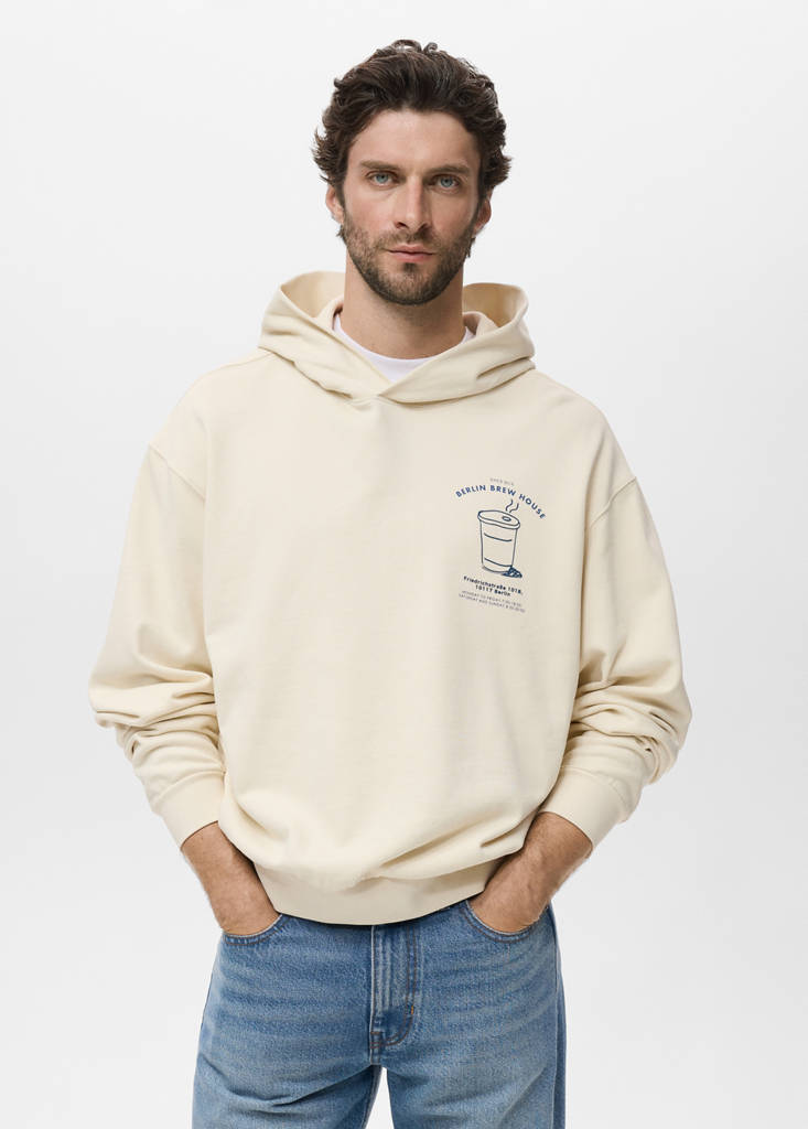 100% cotton fabric. Regular fit. With hood. Graphic print on the chest. Long sleeves with elastic cuffs. Ribbed cuffs and hem