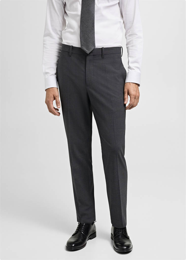 Tailoring collection. Super slim fit. Comfort Stretch: Stretch fabric for added comfort. Fabric made of recycled polyester, a durable, breathable, easy-care fibre that provides comfort in use. Prince of Wales check print. Mid-rise. Concealed button, hook and zip fastening. Belt loops. Two side pockets. Concealed coin pocket at hip level. Two welt pockets with button at the back. Pressed crease detail at the front and back. Comfort: Horizontal and vertical stretch fabric for added comfort
