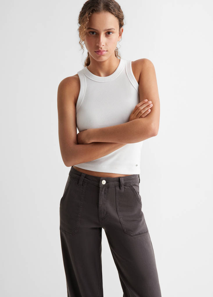 Culotte trousers with pocketsCurrent price [US$ 49.99 ]US$ 49.99Select a colourCharcoalSelect your sizeXXSNot available. I want it!XSNot available. I want it!SNot available. I want it!MNot available. I want it!LNot available. I want it!XLNot available. I want it!DimensionsNotify meAdd to WishlistSee lookFree delivery to storeDenim-style cotton fabric. Culotte design. Long design. Mid-rise. Two pockets. Zip and button fastening. Crop design. Straight designDetails, composition and careStore availabilityItem qualitiesRecycled cottonAt least 20%This fibre is obtained from pre- and post-consumer textile waste that is transformed into new fabrics.