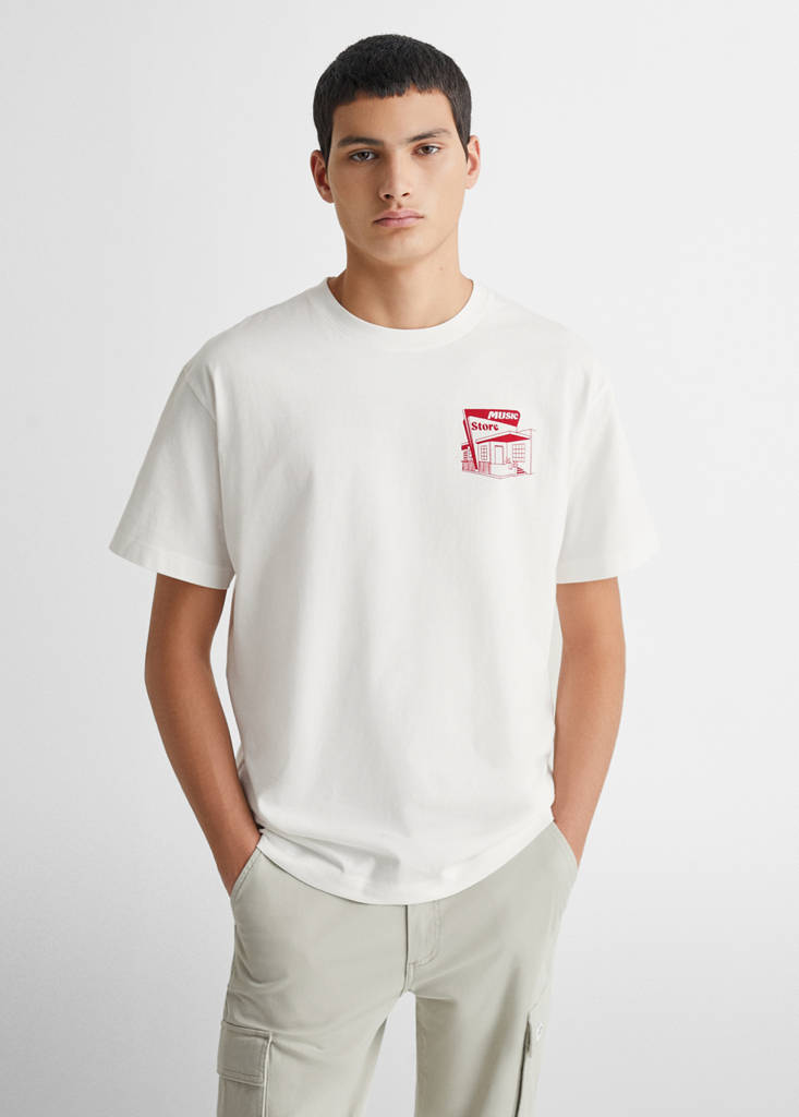 Regular fit. Printed design on the back. Straight design. Short sleeves. Round neck. Standard design. Lightweight fabric