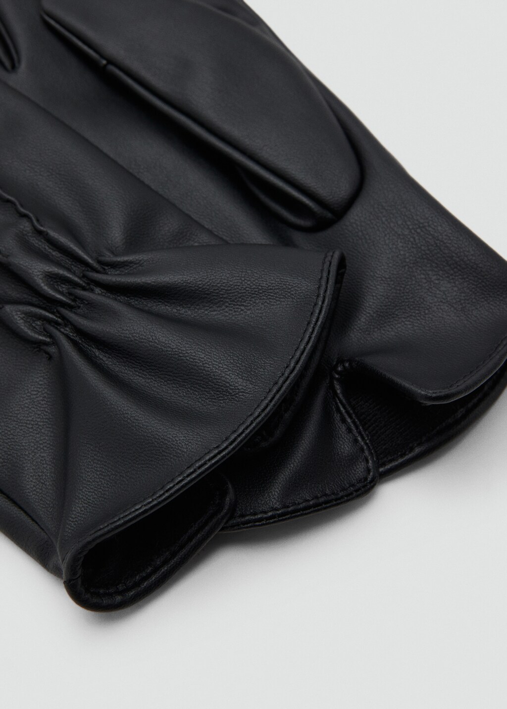 Faux leather. Combined design. Faux fur cuffs. No fastening. Inner lining.