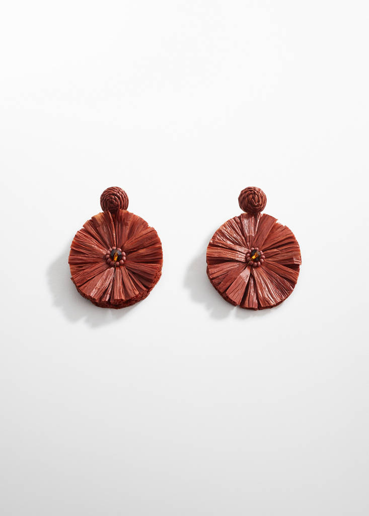 Raffia earringsCurrent price [US$ 25.99 ]US$ 25.99Select a colourBurgundySelect your sizeOne sizeNot available. I want it!Notify meAdd to WishlistSee lookFree delivery to storeRaffia fabric. Metal snap closure. Decorative beads. Party, ceremony and communion collectionDetails, composition and careStore availability