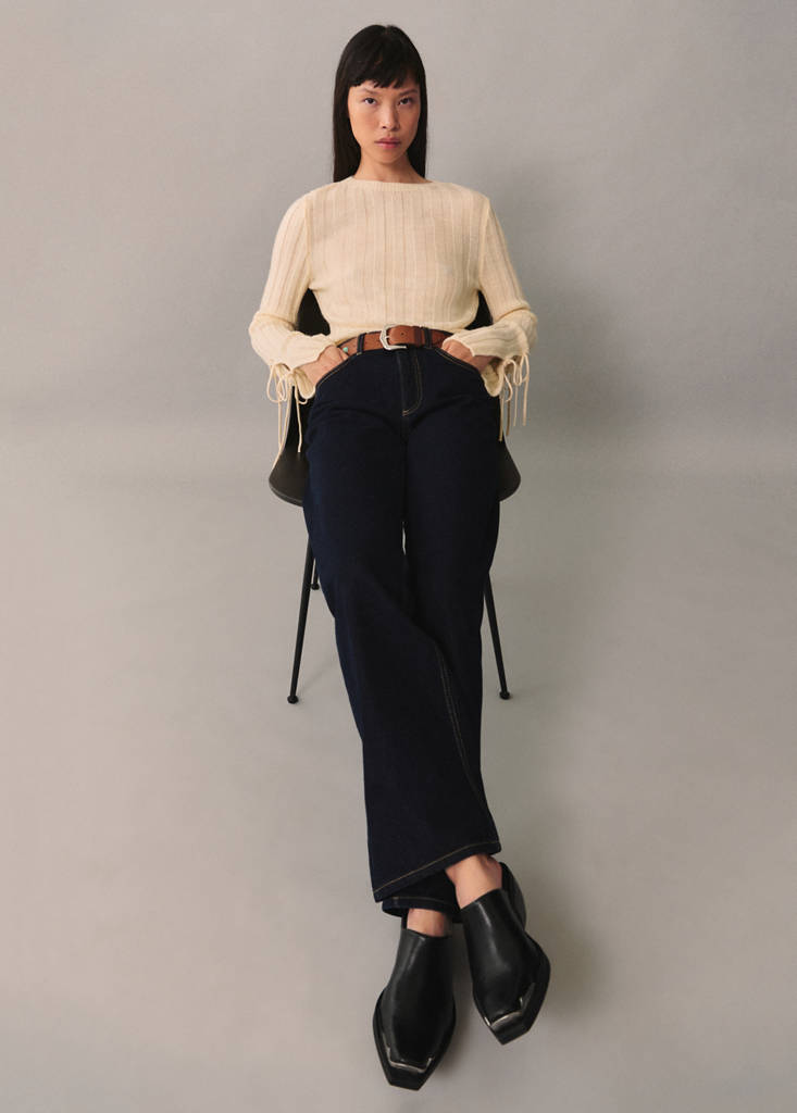 100% bovine leather. Slingback design. Pointed. Block heel. Metallic apply tip. 6 cm heel