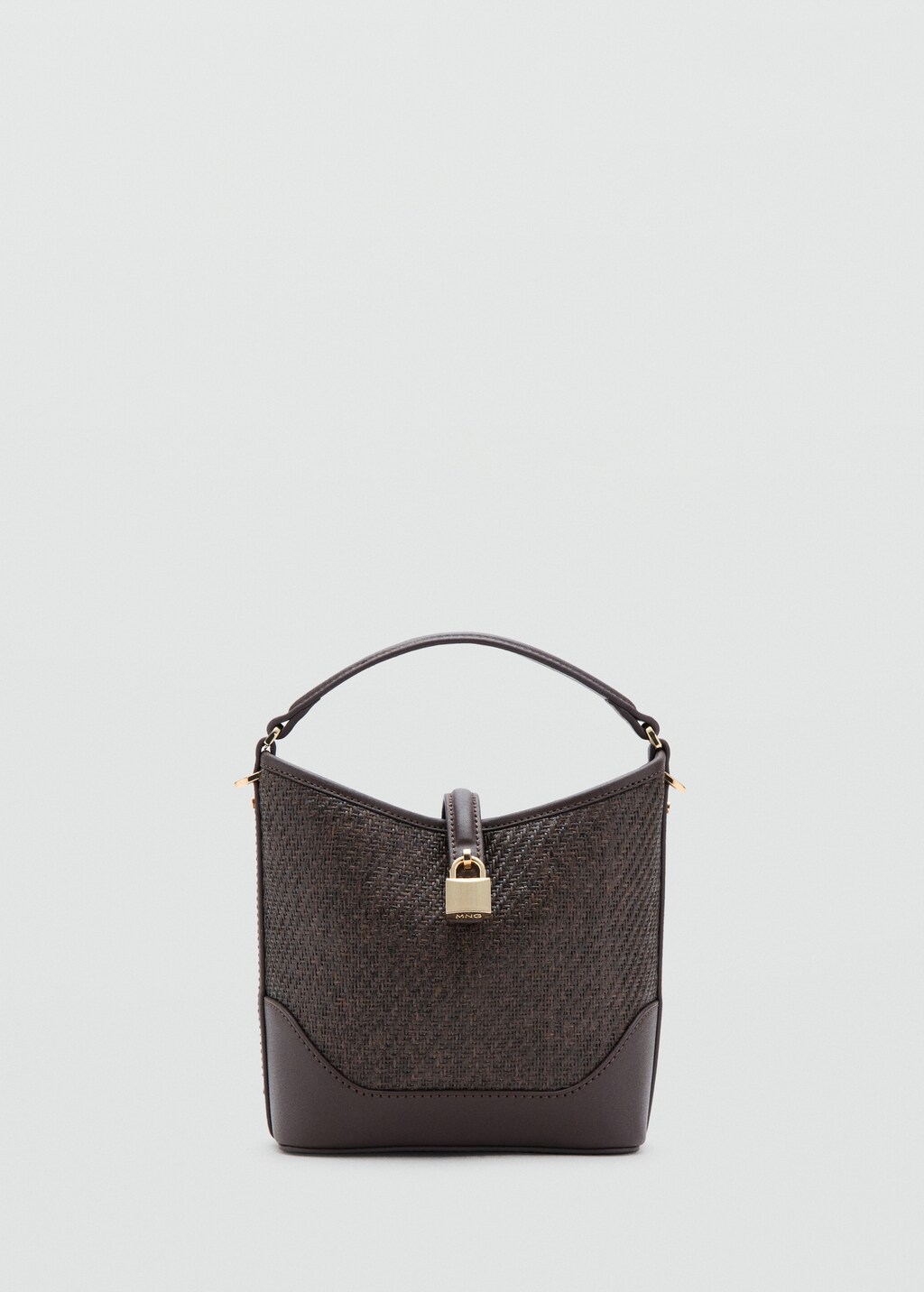 Tissu en raphia. Format petit. Forme bob. Anse courte. Anse longue réglable et amovible. Détail de breloque. Fermoir métallique aimanté. Doublure intérieure.