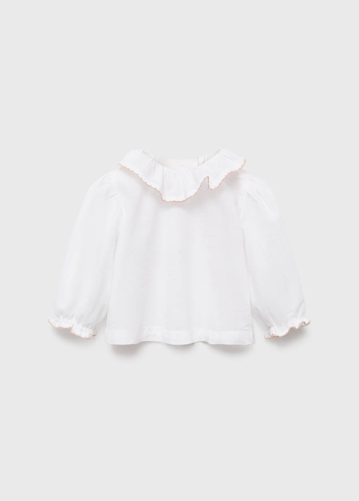 Welcome collection. Maternity Collection. Tissu 100 % coton. Coupe droite. Col babydoll. Manches longues avec poignets élastiques et fronces. Détail brodé col. Fermeture à boutons à l'arrière