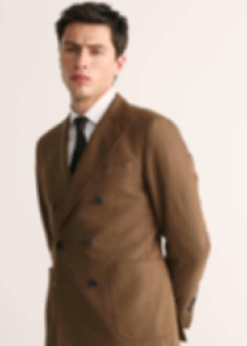 Colección Selection. Tejido mezcla de algodón y lyocell. Slim fit. Diseño cruzado con cierre delantero de doble botonadura. Largo Standard. Cuello de solapa en punta y ojal. Manga larga con puños abotonados. Bolsillo de ribete en el pecho. Dos bolsillos de ribete con solapa laterales