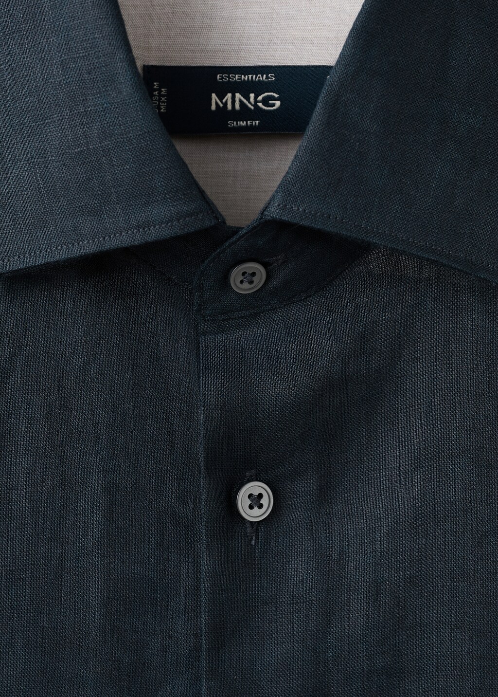 ESSENTIALS: Made to last. Slim fit. Tejido 100% de lino. Cuello camisero. Manga larga con puños abotonados. Cierre delantero con botones. Bajo recto.