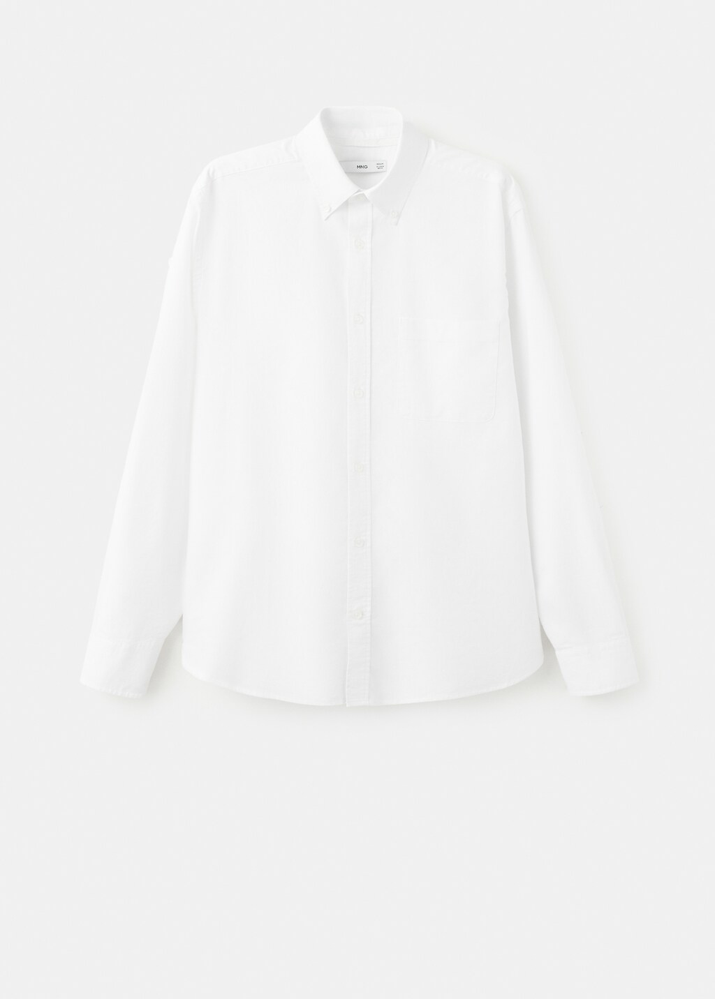 Regular fit. Tejido ligero. 100% Algodón. Cuello camisero con botones. Manga larga con puños abotonados. Bolsillo de parche en el pecho. Cierre de botones