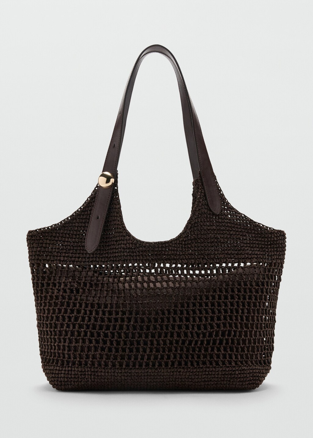 Diseño tote. Tamaño grande. Tejido de fibra natural. Doble asa. Dos asas largas de hombro. Asa ajustable. Bolso pequeño interior de tela. Cierre de cremallera
