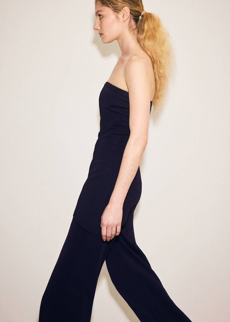 Tejido de punto fino. Diseño entallado. Diseño asimétrico. Palabra de honor. Sin mangas