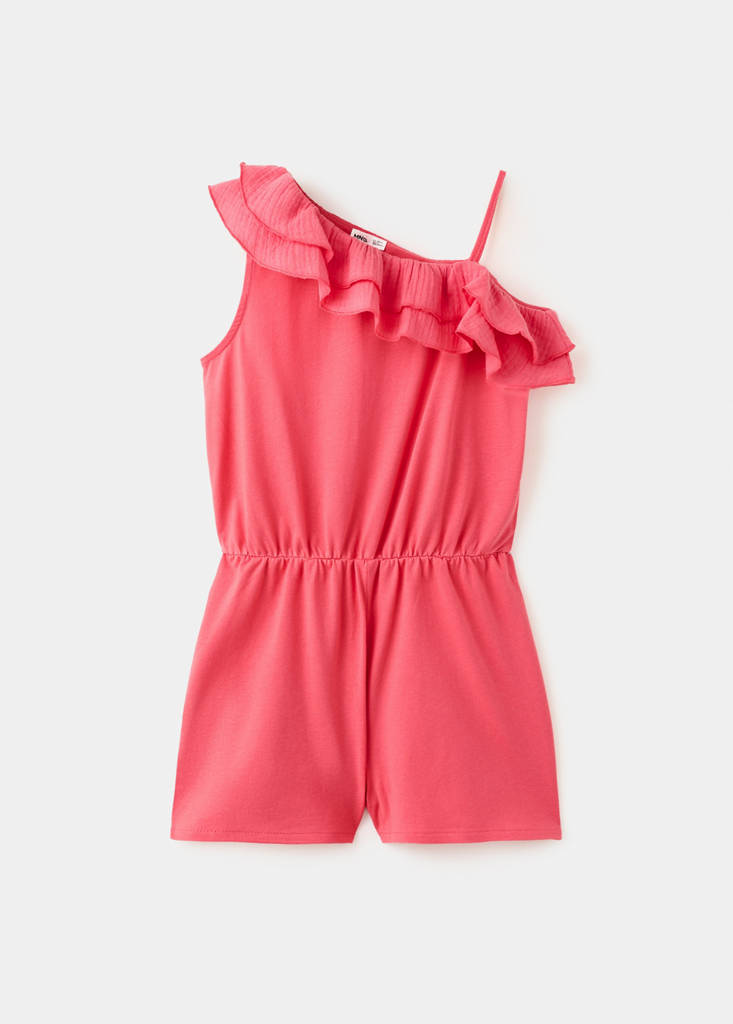 Tejido 100% algodón. Diseño mono. Diseño recto. Diseño corto. Cuello asimétrico. Tirante fino. Cintura elástica. Detalle de volantes en el cuello
