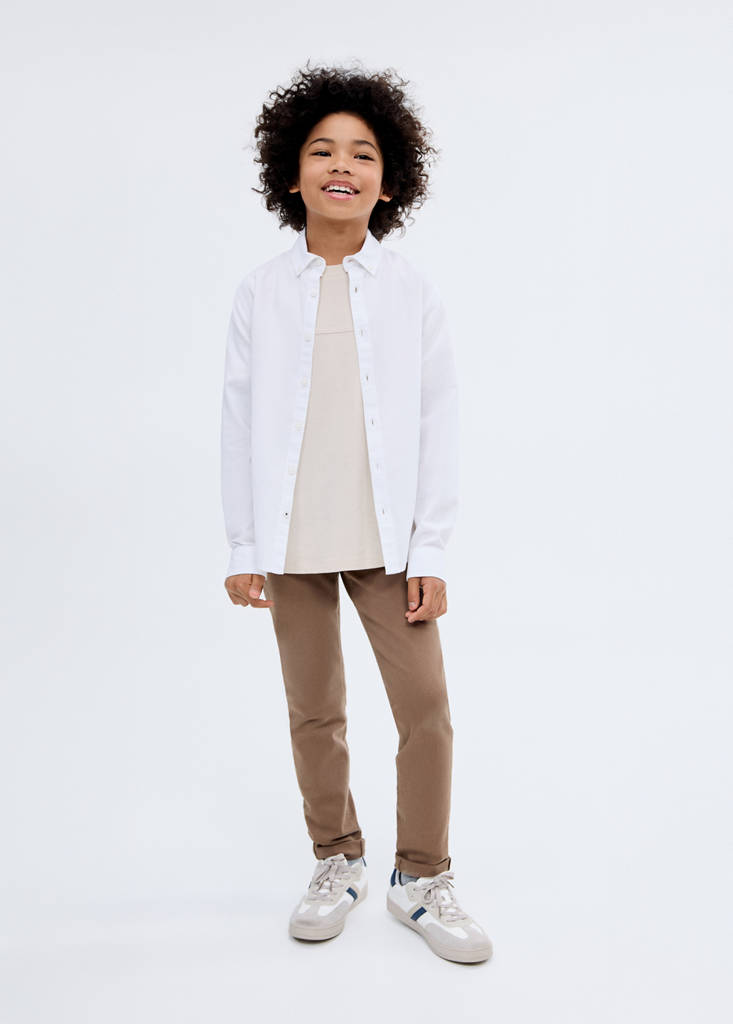 Tejido de algodón. Tejido elástico. Estilo tejano vaquero. Diseño largo. Diseño recto. Trabillas para cinturón. Cierre de botón y cremallera. Dos bolsillos laterales. Bolsillo portamonedas. Bajo con vuelta. Back to school