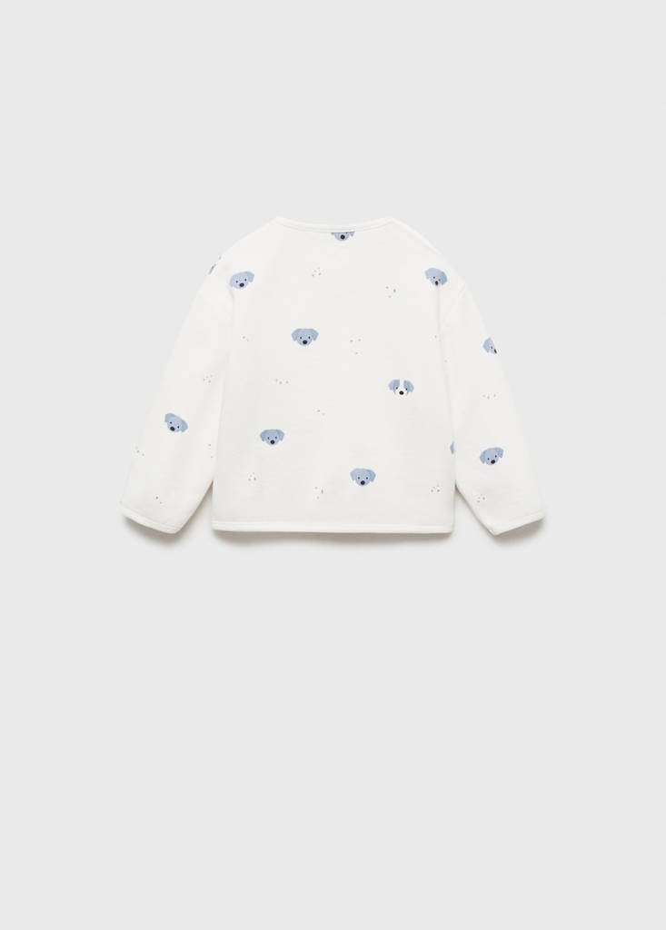 100% Algodón. Cuello redondo. Manga larga. Estampado de perros. Cierre de botones en el hombro. Total look