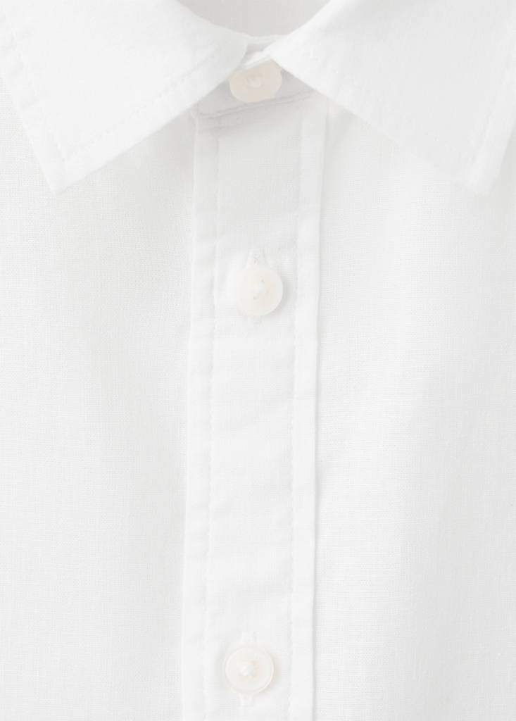Tejido algodón y lino. Diseño recto. Cuello camisero. Manga corta. Cierre delantero con botones