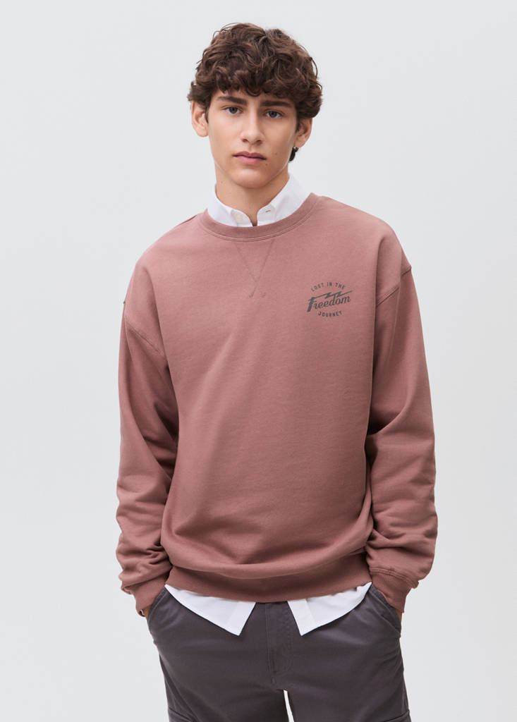 Tejido 100% algodón. Diseño estampado. Diseño recto. Estampado en la parte delantera. Cuello redondo. Manga larga. Cuello, puños y bajo en canalé