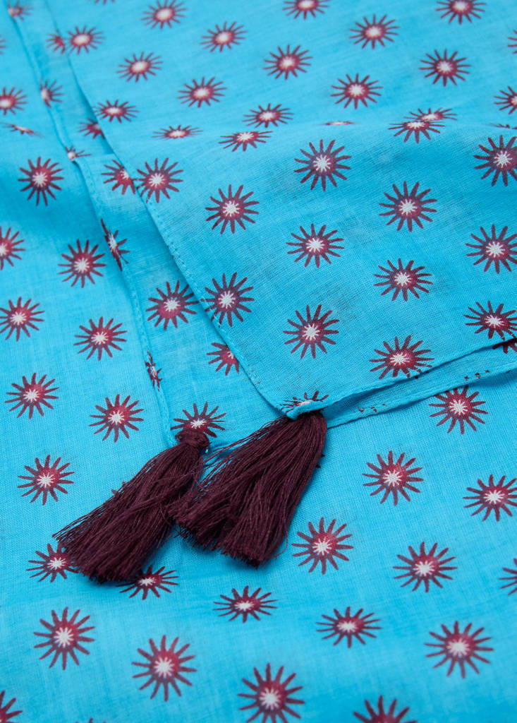 Tejido 100% algodón. Diseño pareo. Estampado de soles. Colección baño